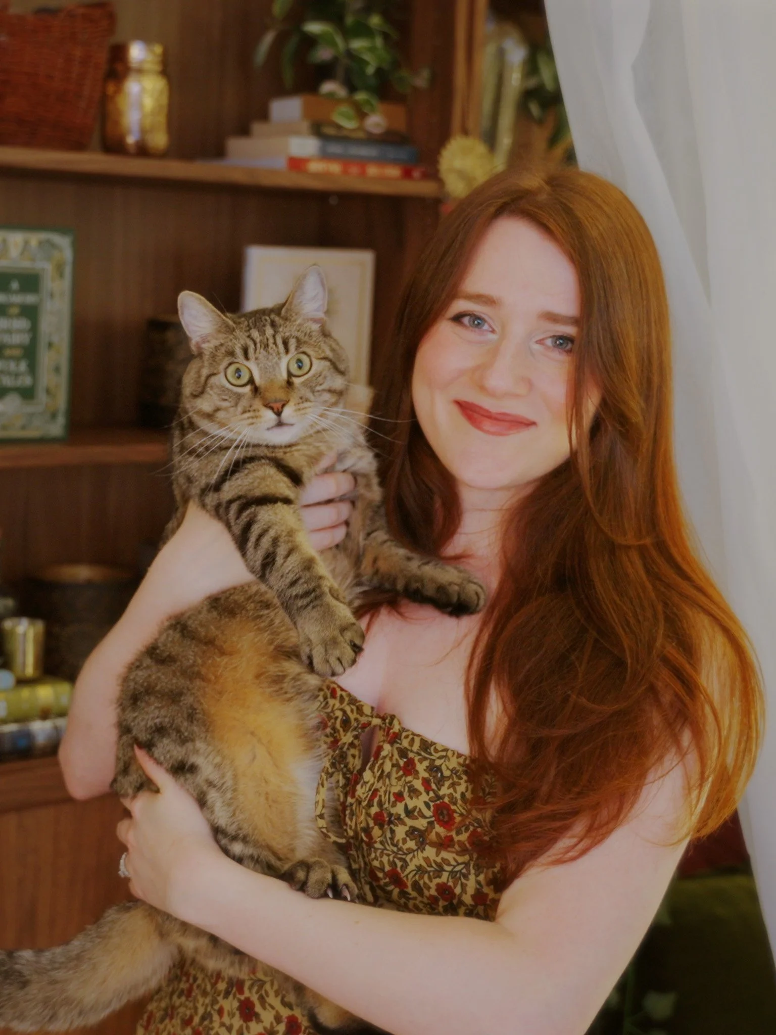 I live in a 200-year old cottage in New Jersey with my fiancé Alex and our adorable tabby cat, Oberon.