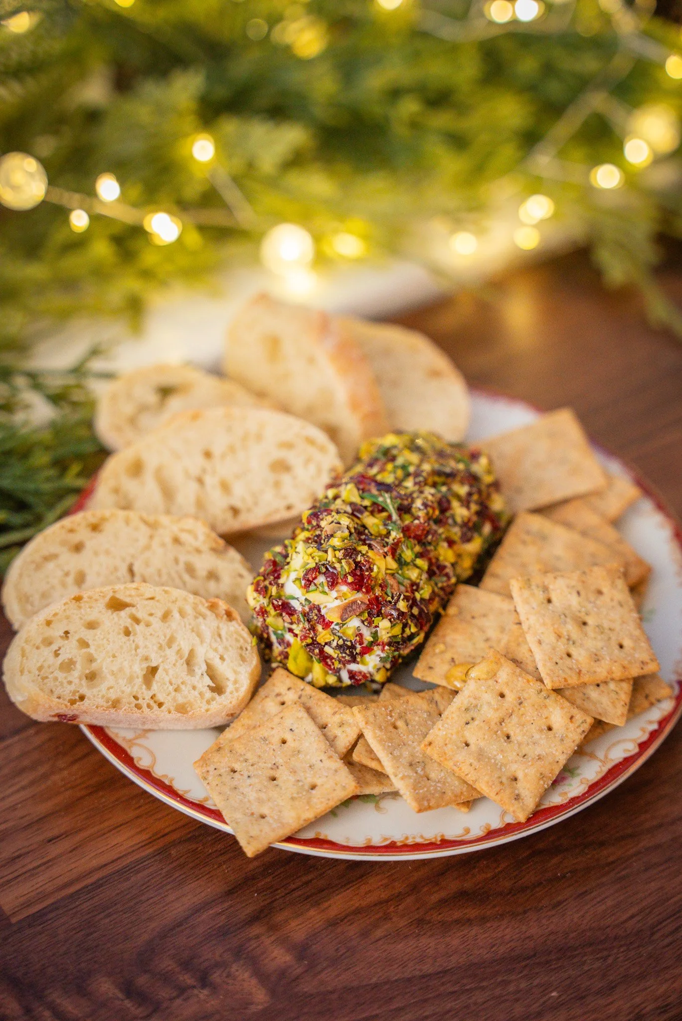 Herbed goat cheese logs are one of my favorite appetizers for entertaining because they’re so easy—they’re usually only made with a few ingredients, and you can make them ahead of time (I think the flavor is often better if they’re made in advance!). In this version, I’m doing a holiday spin on a classic herbed goat cheese log by adding cranberries and pistachios. The cranberries add a delicious sweet-tart flavor to the savory goat cheese, while the pistachios bring crunch, and the green and red color combination is perfect for the holidays.