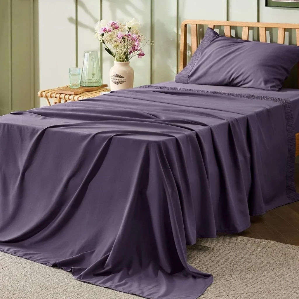 For the bedding, I wanted to incorporate the rich jewel tones common in whimsigoth design, so I went for deep burgundy and plum as the main colors of the bedding and pillows. I used moss green, dusty mauve, navy, and cranberry red as accent colors. Overall, I think this color palette brought so much whimsy and fun to the room.