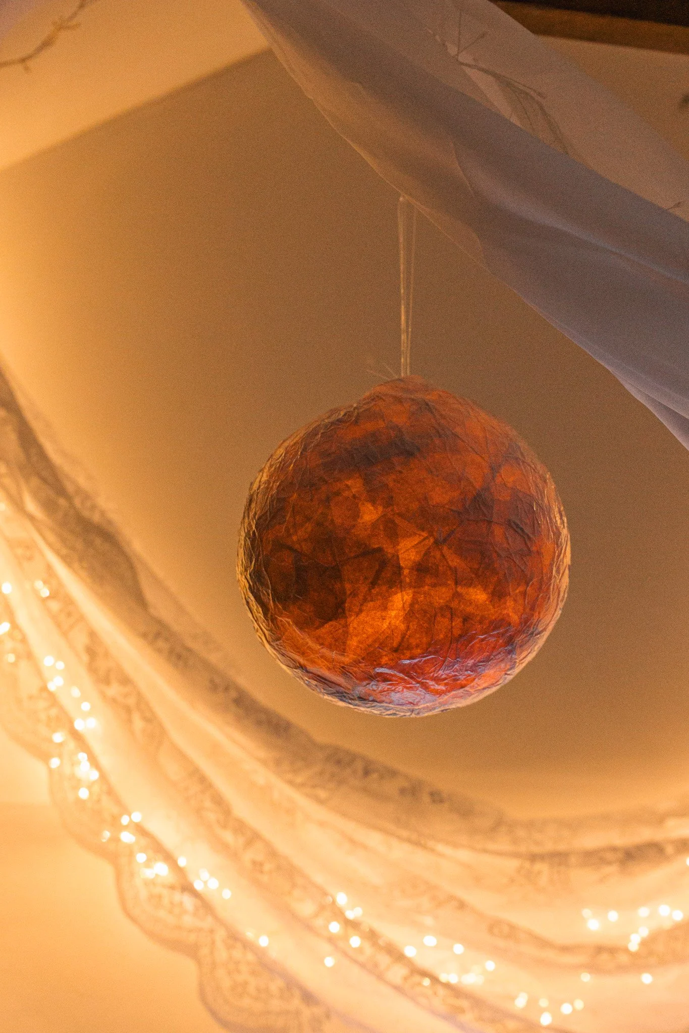 I made a paper mache full moon lamp and some apothecary jars to decorate the reading nook. I was inspired by this video and followed this tutorial, and I used orange fairy lights inside the lantern to make it look like a ‘blood moon’ with a deep orange glow.